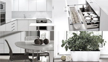 Cocinas contemporáneas, cómodas y fáciles de usar y mantener. Planteamos la cocina como un espacio de relación, disfrute y relax. Conexión directa con la terraza o el jardín, se disponen grandes ventanales que aportan luz natural y facilidad de ventilación.